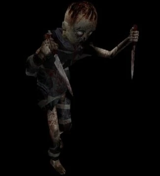 Ребенок — не имеет уникального имени, но уникален своей историей. Это восставшие из мертвых жертвы маньяка-убийцы, который нападал на детей, расчленял и прятал их части тела в мусорных мешках. В следствии этого эти чудища "одеты" в эти мешки, а атакуют при помощи двух огромных ножей. Встречаются в игре Cry Of Fear.